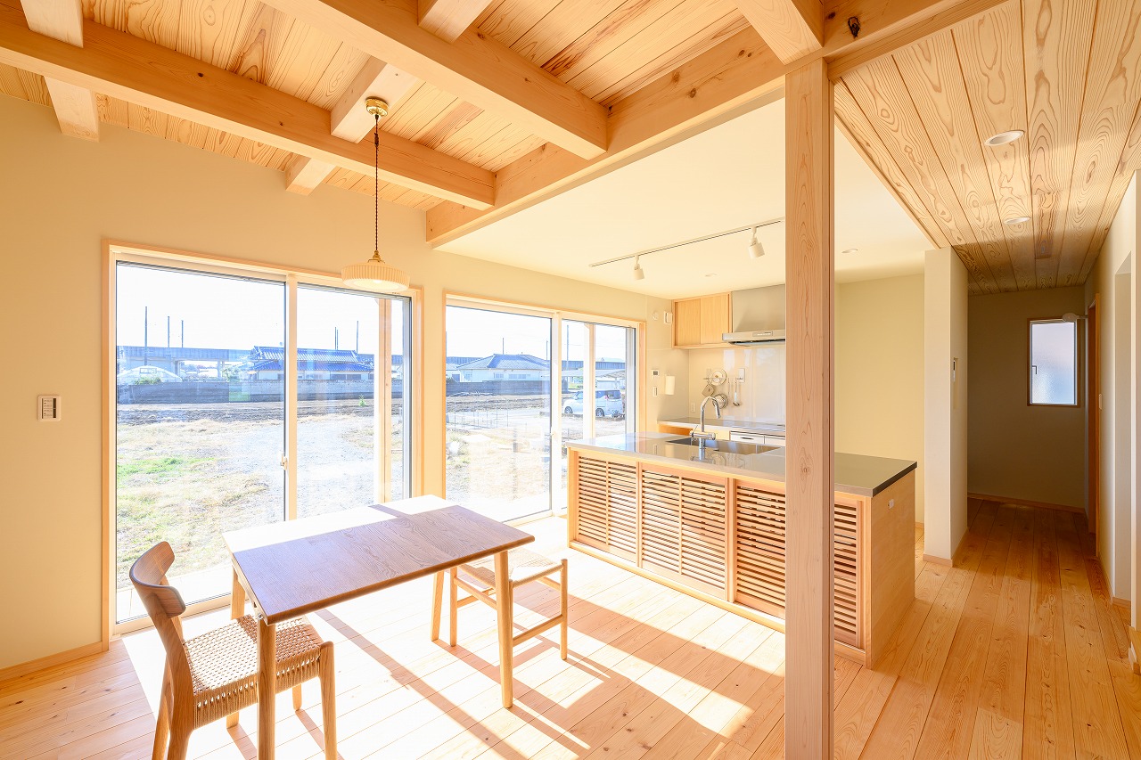 冬の日射取得を考慮し、南面には大開口の掃出し窓。