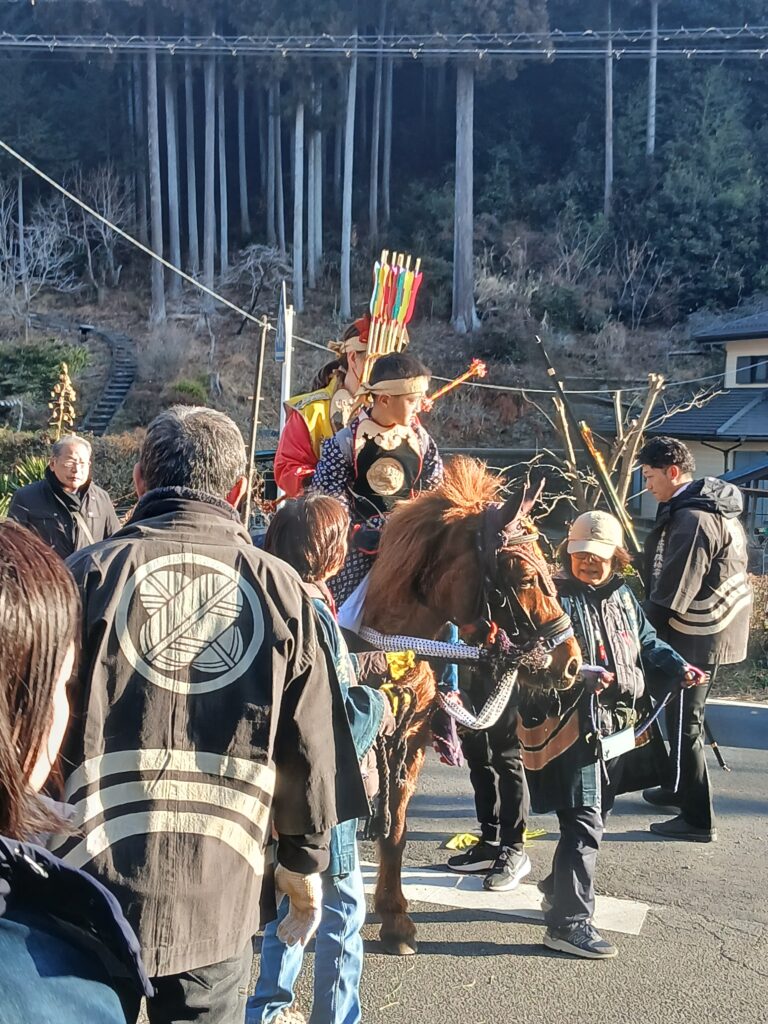 的に弓を射る【夕まとう】は、射られた弓を拾うと福を呼ぶと伝わるだけあり、みんな競って弓を拾います。
