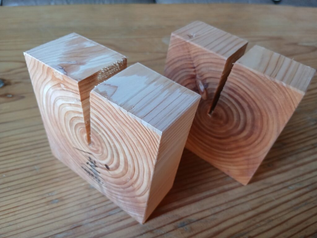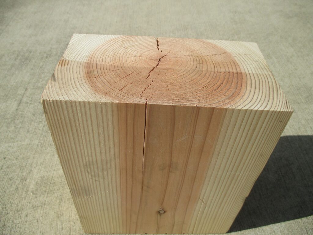 ↑この角材は、杉です。年輪が詰まっているのがわかります。