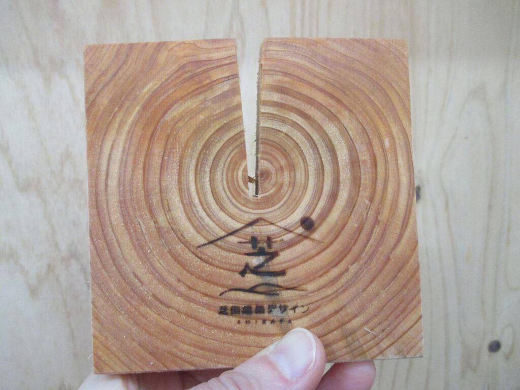 芝田建築デザインの私のデスクには会社の角材で作った、簡易的な檜の加湿器を置いてみました。これは、水で檜の角材の表面を濡らすだけ!